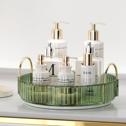 Rotating Makeup Organizer for Vanity, Spinning Cosmetics Storage for Bathroom Countertop, Skincare Holder Rack for Facial Cream, Perfume, Lotion, Lipstick(1 Tier, Dark Green)