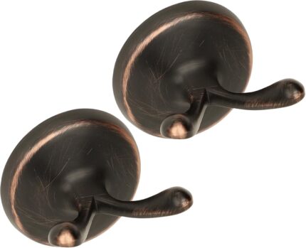 Oil Rubbed Bronze Towel Hooks Antique, 2 Pack Coat Robe Hook Heavy Duty Bathroom Double Hook Wall Mounted, Hand Towel Hooks for Kitchen
