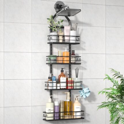 Shower Caddy Hanging Bathroom Organizer: Over Head Adjustable Rack for Tall Showerhead – Extra Large Storage Shelf for Big Shampoo Bottles with Soap Holder