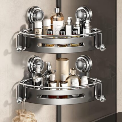 VOLPONE Corner Shower Caddy Suction Cup Shower Shelf Corner No Drilling Bathroom Shower Organizer Storage Rack Adhesive (2-Pack, Gray)