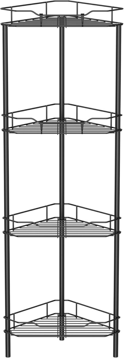 4 Tier Floor Standing Corner Shower Caddy Organizer Shelf with Hooks, Bathroom Shelves Stand Rack, Black