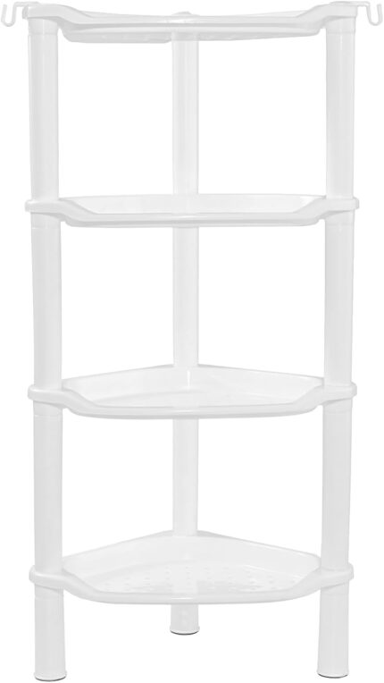 4 Tier Corner Shower Caddy, Rustproof, Plastic Shower Organizer for Bathroom, Bathtub, Shower pan, Bath Accessories Shower Caddies, 13.5 x 10 x 33.5 Inches, White (Round Slot White 4 Tier)