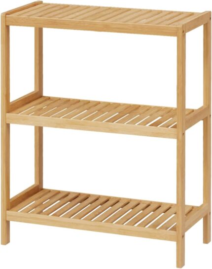 Bamboo Bathroom Shelf, Stand Utility Storage Shelf Multifunctional Bathroom Kitchen Living Room Holder Plant Flower Stand (3-Tier)
