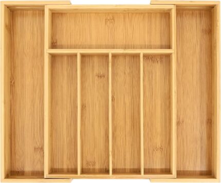 Utoplike Bamboo Expandable Kitchen Drawer Organizer, Adjustable Utensil Holder and Cutlery Tray Organiser, Drawer Divider for Silverware, Flatware, Knives in Kitchen, Bedroom, Living Room, 5 Slot