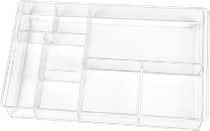 8-Section Clear Drawer Organizer, Large Acrylic Drawer Divider Tray for Desk,Bathroom,Office Makeup,Junk, Plastic Drawers Organizer 13.7″ x 8.7″ x 2″ (8-Section)