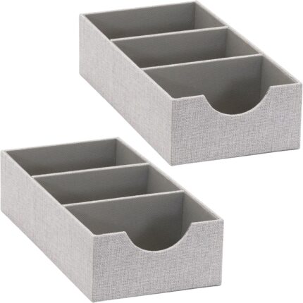 Household Essentials 3 Compartment Organizer Tray 2 Pack, Accessory Organizer, Sturdy Drawer Organizer with Fabric Covering, Gray