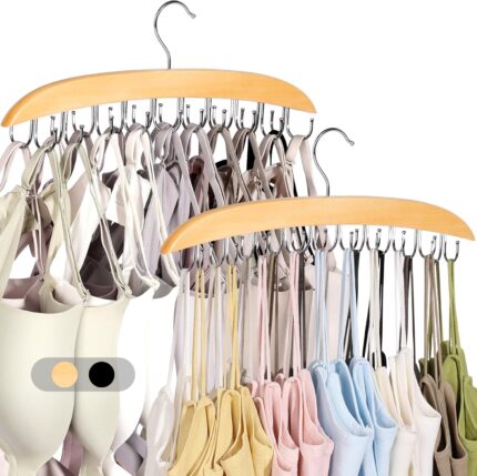 2 Pack Bra Hanger for Closet Organizer, Premium Wooden Tank Top Hangers with 40 Foldable Hooks, 360° Rotating Design, Space Saving Storage for Tank Tops, Bras, Scarves and More