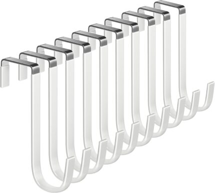 Over The Door Metal Hooks with Plastic Coating 5.5″ Fit 0.5″ to 1 3/8″ Door 10 Pcs Heavy Duty Single Towel Robe Rack Wreath Bathroom Shower Hanger Shoe Organizer Ironing Board Short White