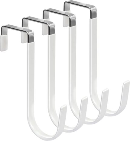 FYY Over The Door Hooks, 4 Pack Hangers Hooks with Rubber Prevent Scratches Heavy Duty Organizer for Living Room, Bathroom, Bedroom, Kitchen Hanging Clothes, Towels, Hats, Coats, Bags White