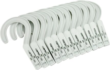 Laundry Hooks Boot Hangers Plastic Clothes Pins Hanger Clips for Bathroom Travel Portable White (12Pcs)