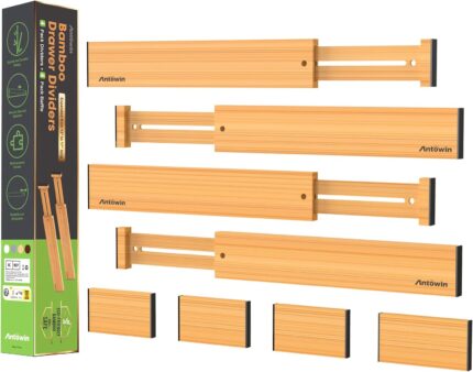 ANTOWIN 4 Pack Expandable Drawer Dividers, 4.7” High, Extend from 12.2” to 17.7”, Dresser Drawer Organizers, Bamboo Separators for Kitchen, Bedroom, Office, Bathroom (White)