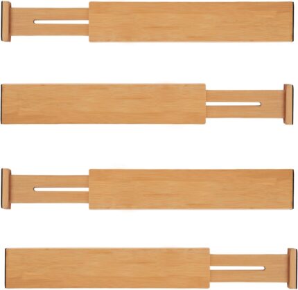BAMEOS Drawer Dividers kitchen Organization Bamboo Utensil Organizers for Kitchen Bedroom Bathroom Dresser Office 4-pack
