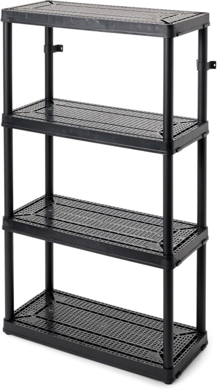 Gracious Living 4 Shelf Fixed Height Ventilated Medium Duty Storage Unit 14 x 32 x 54.5″ Organizer System for Home, Garage, Basement, & Laundry, Black