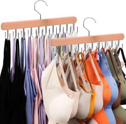 2 Pack Tank Top Hanger, 40 Hooks Large Capacity Bra Hanger, Bra Hangers for Closet Organizer & Storage, Tank Top Hangers Space Saving, Standard Hangers for Sports Bras, Tank Top (Wood, 2 Pack)