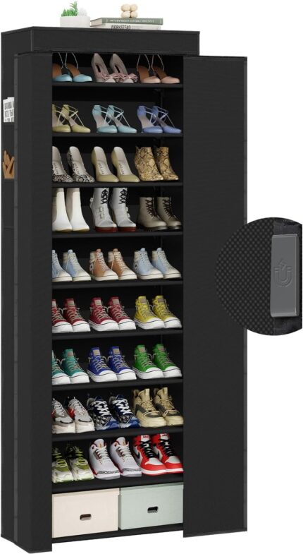 Shoe Rack with Cover, Tall Shoe Rack with Magnetic Closure Cover, 10 Tier Shoe Organizer Storage for 34-37 Pairs Shoes and Boots Large Capacity Shoe Cabinet for Closet, Entryway, Dorm, Garage