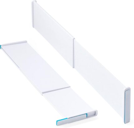YouCopia ReStickable™ Drawer Dividers, Extra-Long, Adjustable Kitchen Organizers for Utensil and Tool Storage, Expands 13″ to 24″, Deep Height, 2-Pack, Speckled White
