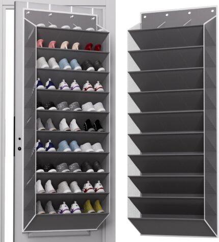 30 Pairs Over The Door Shoe Organizer, 10-Tier Hanging Shoe Rack with Deep Pocket for Closet, Extra Large Shoe Storage Holder for Sneakers, Boots, Heels(Grey)