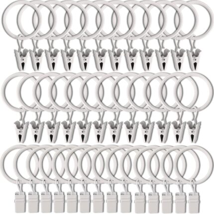 40 Pack White Curtain Rings with Clips, Curtain Hooks Hangers Clip Rings for Hanging Drapes Bows Hat, Drapery Rings 1.26 in I D, Fits up to 1 in Diameter Curtain Rod.