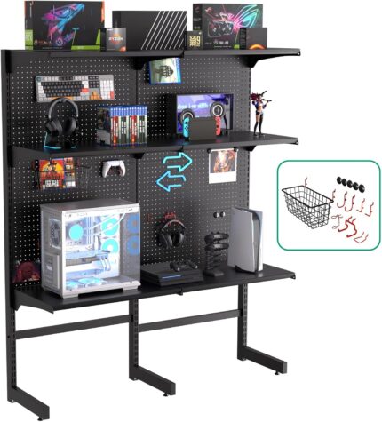 JWX DDB Gaming Pegboard Standing Shelf Units, Modular Pegboard and Shelf System with 15 Pieces Organizer Tool Holders