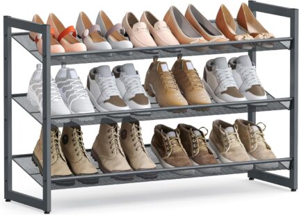Stackable Small Shoe Rack, Entryway, Hallway and Closet Space Saving Storage and Organization (3-Tier, Black)