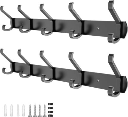 2 Pack Coat Rack Wall Mount,17.3 in Wall Hooks for Hanging, Coat Hanger Wall Mount Towel Rack Hat Rack for Wall with 10 Hooks for Entryway, Bedroom, Bathroom (Black)