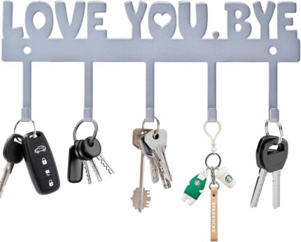 5-Hook Adhesive Wall Mount Key Holder,No-Drill Easy Install Key Hanger for Door, Kitchen, Entryway, 10×4 Inches,Silver