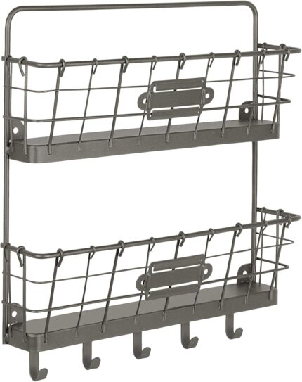 Spectrum Key Holder Wall Mount Mail Organizer for Entryway Office Kitchen Bedroom Storage Organization, Vintage Living Industrial Gray Wire Hanging Key Hook Mail Storage Rack Easy to Mount Basket