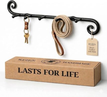RTZEN Farmhouse Small Key Holder for Wall – Handcrafted Swirl Decorative 5 Key Hooks for Home Entryway – Wrought Iron Wall Mount Rack Purse Coat and Leash Holder or Organizer (Classic Black)