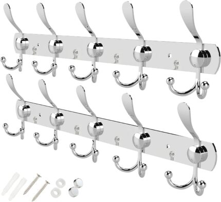 GlazieVault Coat Rack Wall Mount – Stainless Steel Coat Hooks (2 Pack) – Heavy Duty Wall Hooks for Clothes & Accessories (Silver Tri)