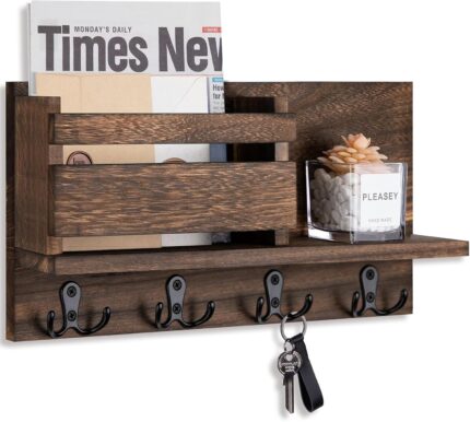 KERESUEDO Mail and Key Organizer for Wall – Key Holder Wall Mount with Storage Box and 5 Key Hooks, Mail Holder Wall Mounted for Entryway, Apartment, Office, Home Decor Organization (Burnt Brown)