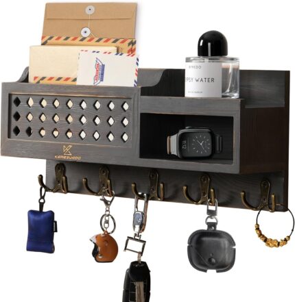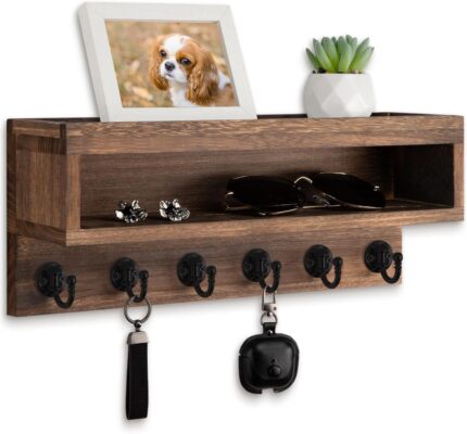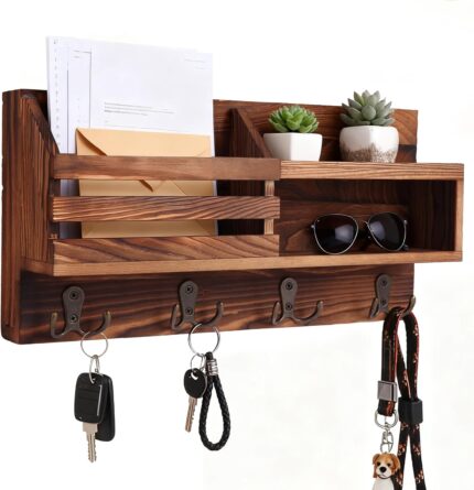 Key Holder for Wall – Stylish Wall Shelf with Hooks, 4 Rustic Key Hooks for Wooden Mail Organizer with Shelf, Perfect Entryway Storage for Keys, Letters & Small Items