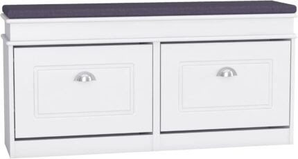 Panana Shoe Storage Bench, Shoe Rack with Padded Seat Cushion, Shoe Cabinet with 1/2 Flip-Drawer for Closet Hallway Mudroom (White, 2 Drawers)