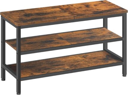 Wooden Shoe Bench, 3-Tier Industrial Shoe Storage Bench, Sturdy Shoe Rack Bench with Storage for Entryway, Living Room, Halley, Space Saving, Rustic Brown and Black HX06BR