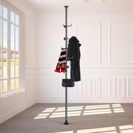 Coat Rack Freestanding,Adjustable 56-125 inch Tension Rod Coat Tree 12 Hooks Hanger Stand for Coat Hat Bedroom Livingroom Kitchen Bathroom Apartment Entryway Hall Office Black