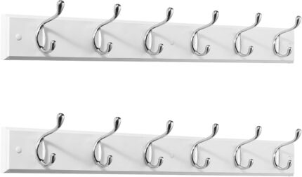 Coat Rack Wall Mount 2 Pack, White Coats Hangers with 6 Metal Silver Hooks for Hanging Jacket, Coat and Bags Hook Single Prong, Wall-Mounted Hanging Hooks for Hats, Clothes in the Entryway, Bedroom