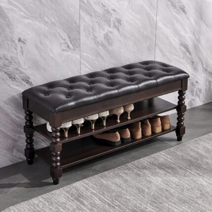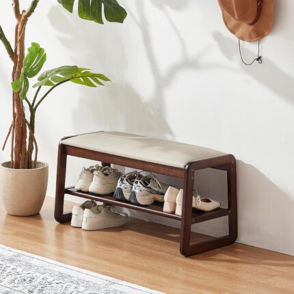 Shoe Storage Bench with Cushion, Entry Bench with Storage Solid Wood Shoe Bench Ideal for Entryway Living Room and Corridor (Walnut 39.4”)
