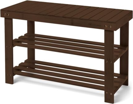 Leaf & Grain Bamboo Shoe Rack – Shoe Storage Bench for Front Door Entrance – Entryway Bench with Shoe Shelf, Shoe Storage Organizer, Wooden Shoe Rack, Durable Shoe Bench for Home (Walnut)