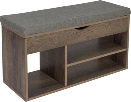 Household Essentials Entryway Storage Bench with Lift-top Lid and 3 Shoe Compartments in Ashwood Rustic Wood Grain