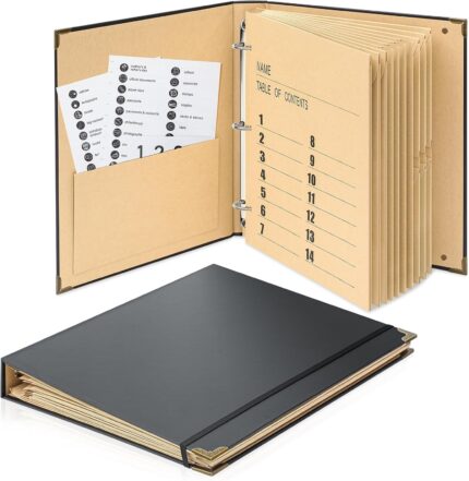 Marspark 3 Rings Important Document Organizer with Labels, Family Document Organizer Binder, Expanding File Folder for Important Papers, Letters, Birth Certificates, Photos, Passports(Black)