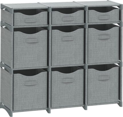 9 Cube Closet Organizers, Includes All Storage Cube Bins, Easy To Assemble Storage Unit With Drawers | Room Organizer For Clothes, Baby Closet Bedroom, Playroom, Dorm (Light Grey)