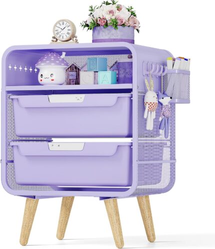 Kids Nightstand,Girls Bedside Table,Night Side Table,Kids Night Stand,End Tables Bedroom,Purple Cute Nightstand with Storage Drawer for Girls