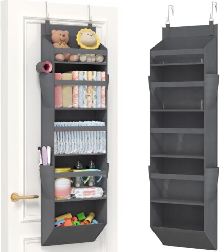 Lifewit 1 Pack Over the Door Organizer, Clear Window Hanging Storage with 4 Mesh Side Pockets, Anti Tilt 40 lbs Load Behind Door for Pantry, Nursery, Bathroom, Bedroom, Dorm, 5 Section, Gray