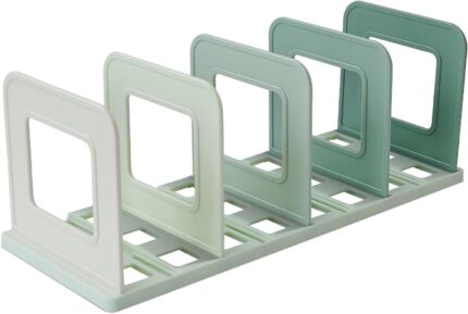 BAYTORY Gradient Desk File Holder, Vertical File Organizer with Adjustable Dividers, Desktop Book Organizer, Binder Shelf for Office Desk (4 Slots, Green)