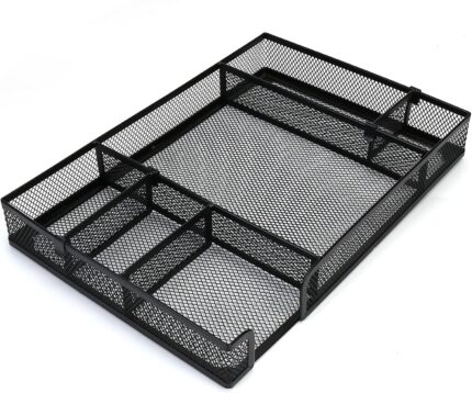 Desk Drawer Organizer, Office Drawer Divider Organizer Tray with 6 Compartments, Metal Mesh Desktop Organization and Accessories for Stationery Makeup Kitchen Toolroom School &Office, 12.6×8.27×1.6 in