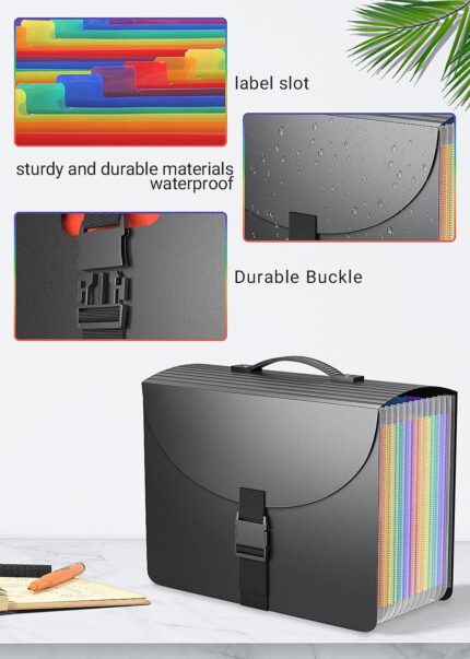 Expanding File Folders,Accordion File Organizer with Handle,13 Pockets Expandable Filing Folders,Tabs Included in Filing Box,Adjustable Strap,Bill Documents Organizer,A4/Letter Size