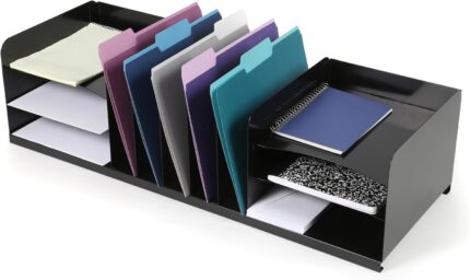 Huron Countertop File Binder Organizer Storage, Combination Vertical 5/Horizontal 6 Slot Letter Tray, Black Steel