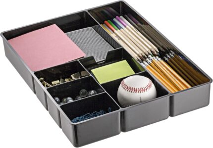 Officemate Deep Drawer Organizer Tray, 8 Compartments, 2 1/4″H x 15 1/8″W x 11 1/2″D, Black
