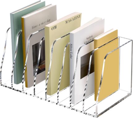 SANRUI Acrylic File Organizer, Clear Magazine File Holder Desk Organizer for Office Organization and Storage with 5 Vertical Compartments, Desktop Bookshelf for Home Office Organization
