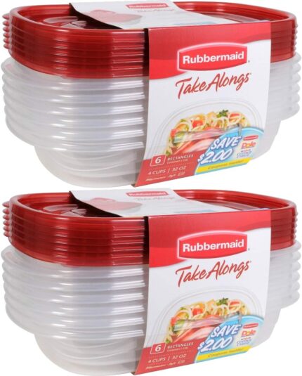 Rubbermaid Take Alongs Food Storage Container, 4-Cup Rectangle, Set of 12, (12 Pack), Red
