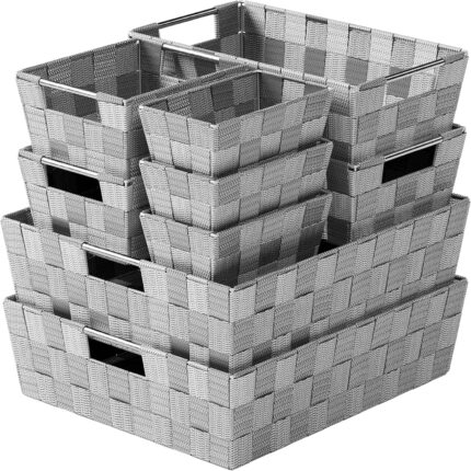 Baskets For Organizing Set Of 9 Dark Grey – Storage Baskets For Shelves – Perfect Closet Organizer Bins, Bathroom Basket, and Pantry Basket – Small Storage Bins For Shelves – Bin For Organization